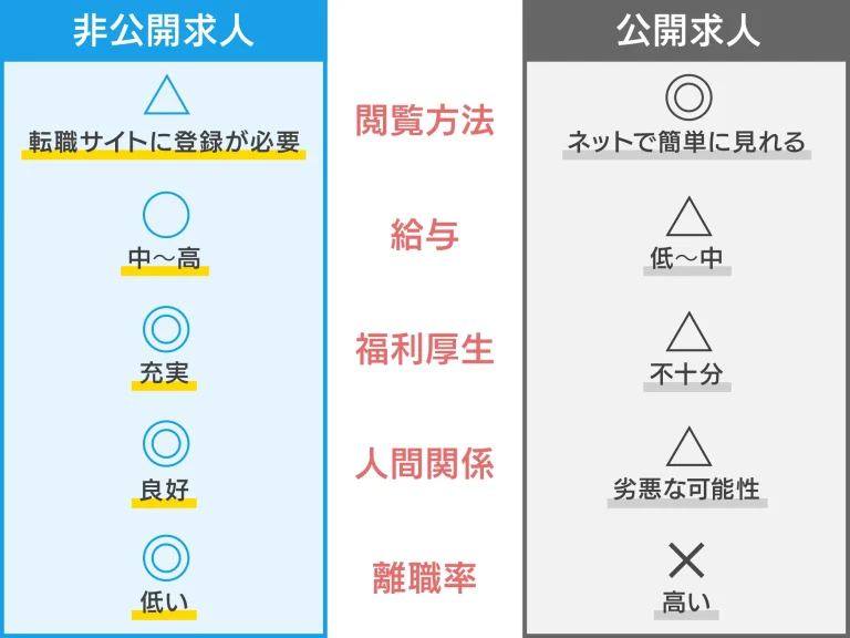 つまり、転職サイトの非公開求人を狙うことで、労働環境の良いホワイト求人に巡り合えるという大きなメリットがあるのです。